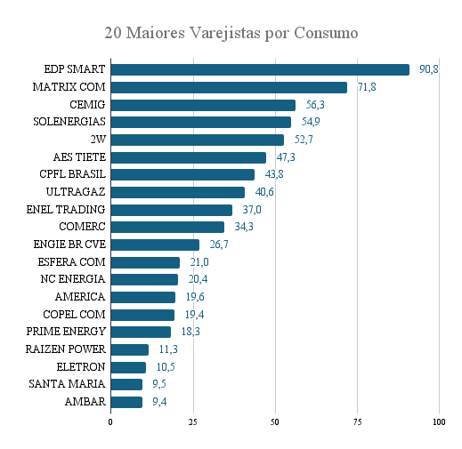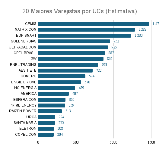 Vale destacar que esses valores são estimativas baseadas no consumo médio e no número de agentes, uma vez que a CCEE não disponibiliza o número exato de UCs por comercializador varejista.