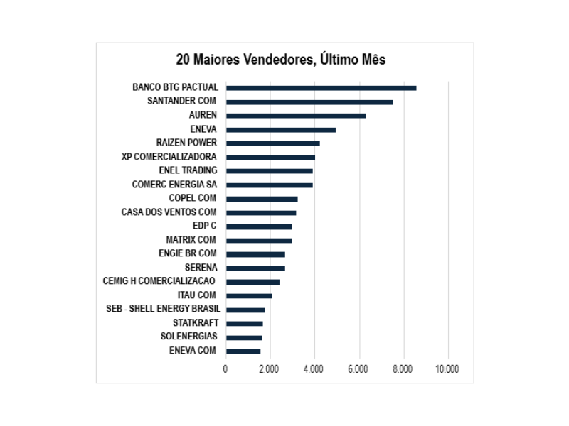 - XP COMERCIALIZADORA e Comerc Energia SA mantêm volumes superiores a 3.500 MW médios, firmando-se no grupo intermediário de relevância;