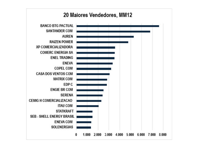 Confira abaixo o ranking das comercializadoras que mais venderam energia nos últimos 12 meses (MM12):