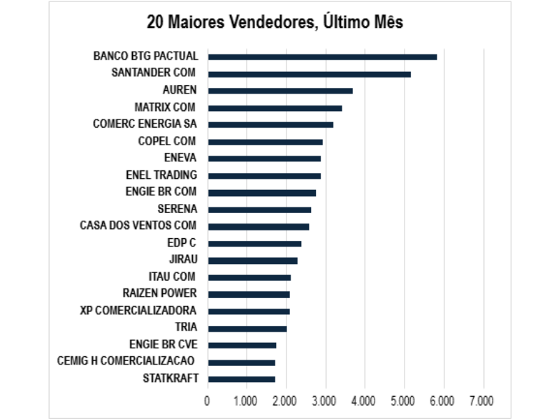 Além disso, Eneva e Copel COM também permanecem entre os dez maiores vendedores, ambos com volumes superiores a 3.200 MW médios. Assim, esse grupo confirma a presença de players com forte atuação no mercado corporativo.